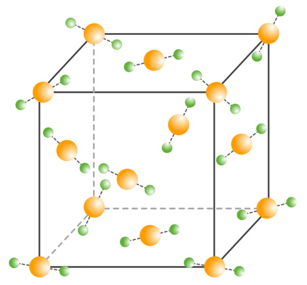 La carboglace est la forme solide du dioxyde de carbone $*\ce{CO2}*$. Elle cristallise sous la forme d’un réseau cubique à faces centrées.