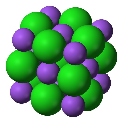 Le chlorure de sodium, à l’état solide, est un exemple de cristal. Pourquoi parler du chlorure de sodium $*\ce{NaCl}*$ en particulier ? Tout simplement parce que c’est un cristal que l’on rencontre tous les jours : c’est du sel de cuisine.