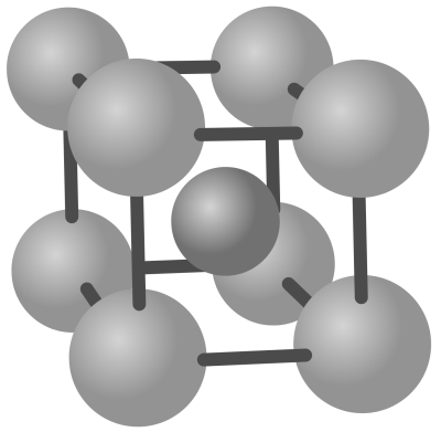 Voici un schéma montrant la maille cubique centrée :