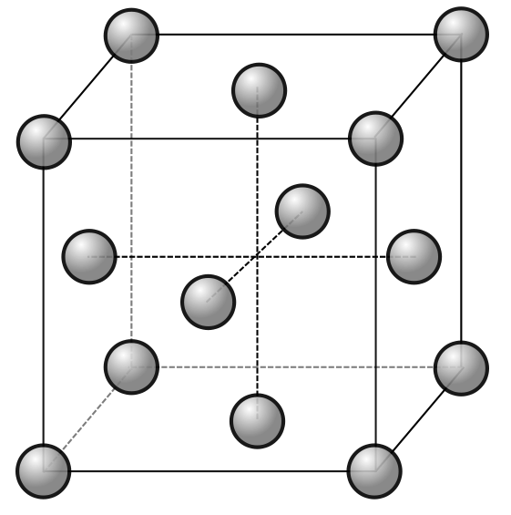 On en déduit que le rayon atomique du fer vaut un quart de la diagonale de la face de la maille CFC (voir également l’exercice Compacité de la maille CFC).