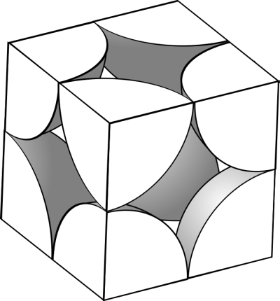 $µ c = \frac 43 \frac {\pi r^3}{a^3} µ$mais comme les atomes se touchent, on a $*a = 2r*$. Du coup : $µ \begin{aligned} c &= \frac 43 \frac {\pi r^3}{(2r)^3} \\ c &= \frac {\pi}6 \end{aligned} µ$