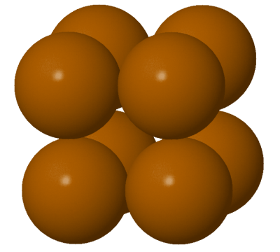 Cette maille n’est pas très répandue parmi les cristaux, car elle ne présente pas un empilement très compact. Si vous deviez mettre un maximum d’oranges dans une cagette, ce n’est certainement pas comme ça que vous les empileriez… 😉