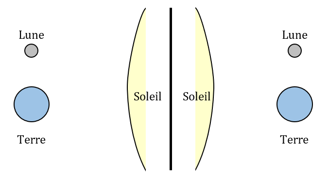 2.a. Schématiser, sans souci d’échelle, les positions relatives de la Lune, du Soleil et de la Terre dans la situation décrite par Léonard de Vinci dans le doc. 2.