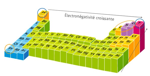 L’électronégativité d’un élément est sa capacité à attirer à lui les électrons d’une liaison covalente.