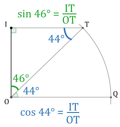Donc IT = $*R_T*$×cos(44°) = $*R_T*$×sin(46°) = 4583 km.