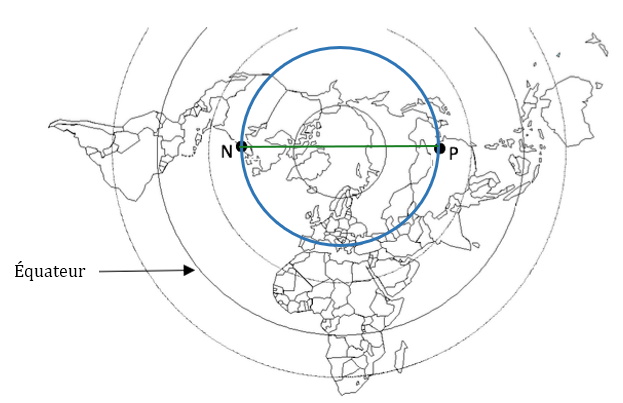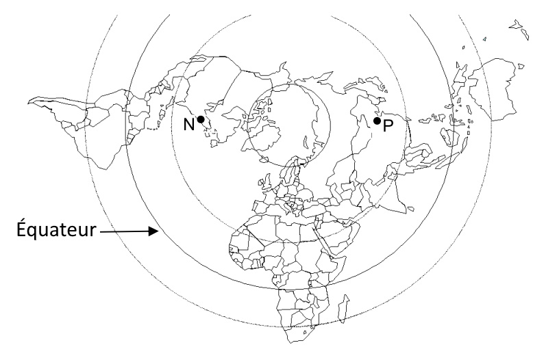 Document 2 : représentation de la Terre pour l’étude du trajet en passant par le Pôle Nord