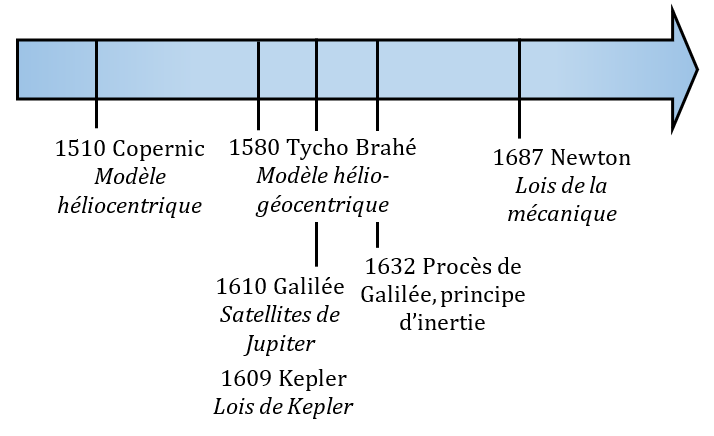 Le modèle géocentrique commence à vaciller vers 1510 et est définitivement abandonné en 1687.