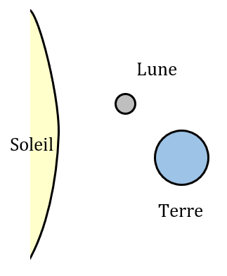 2.a. Schématiser, sans souci d’échelle, les positions relatives de la Lune, du Soleil et de la Terre dans la situation décrite par Léonard de Vinci dans le doc. 2.
