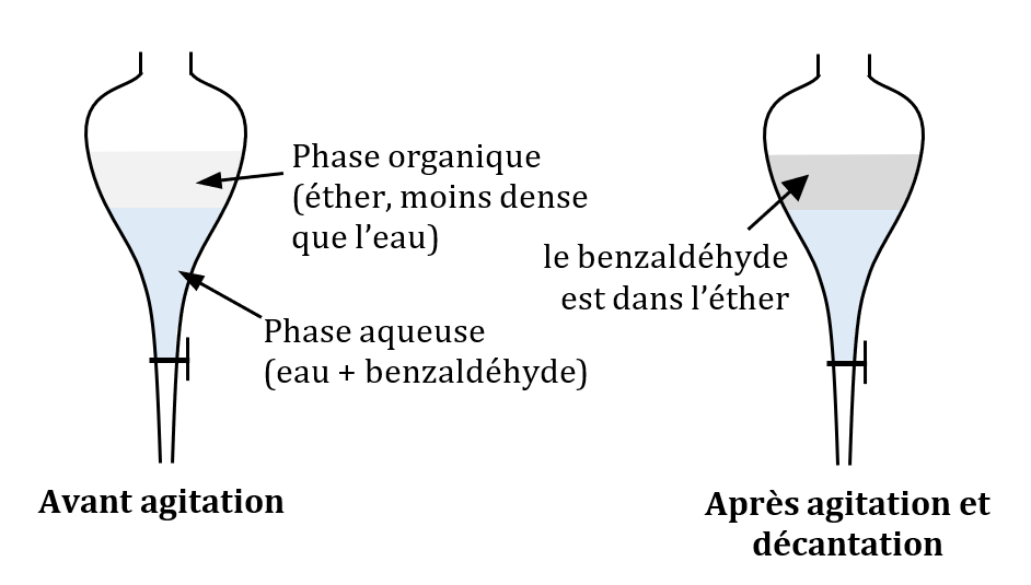 1. Il faut choisir un solvant dans lequel le benzaldéhyde est bien soluble et qui n’est pas miscible à l’eau : l’éther.
